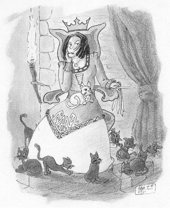 "Elle avait neuf chats noirs et un blanc, ses esclaves avec lesquels elle tenait conversation, et dont elle lisait les pensées, les incitant à percer à jour tous les noirs secrets du Gondor, de sorte qu'elle savait tout ce que les hommes souhaitaient dissimuler, et elle faisait de son chat blanc l'espion de ses chats noirs, et elle les tourmentait." Contes & Légendes Inachevés - 3ème Age
